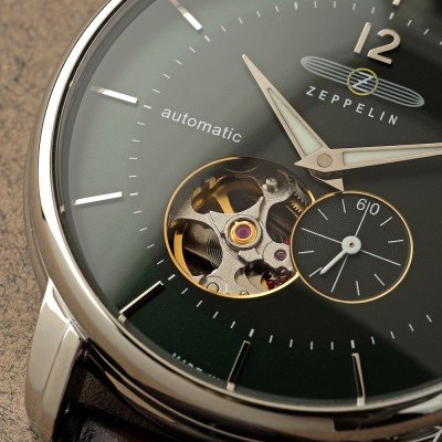Zegarek marki Zeppelin ma stal chirurgiczna kopertę 40 mm średnicy i jest wyposażony w pasek z materiału skóra. Wewnątrz koperty jest mechanizm Miyota i zegarek ma także szkiełko K1 Mineral.