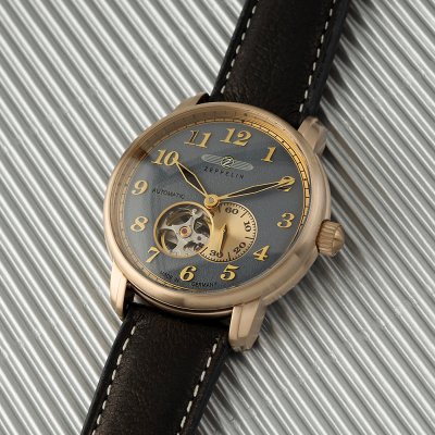 Zegarek marki Zeppelin ma stal chirurgiczna kopertę 40 mm średnicy i jest wyposażony w pasek z materiału skóra. Wewnątrz koperty jest mechanizm Miyota i zegarek ma także szkiełko K1 Mineral.