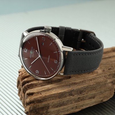 Zegarek marki Zeppelin ma stal chirurgiczna kopertę 40 mm średnicy i jest wyposażony w pasek z materiału Z materiału. Wewnątrz koperty jest mechanizm Miyota i zegarek ma także szkiełko K1 Mineral.