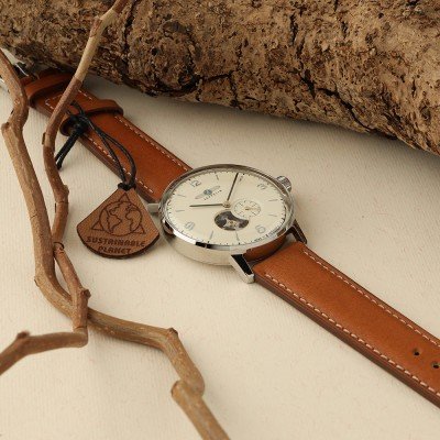 Zegarek marki Zeppelin ma stal chirurgiczna kopertę 40 mm średnicy i jest wyposażony w pasek z materiału Skóra z recyklingu. Wewnątrz koperty jest mechanizm Miyota i zegarek ma także szkiełko Akryl.