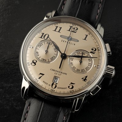 Zegarek marki Zeppelin ma stal chirurgiczna kopertę 42 mm średnicy i jest wyposażony w pasek z materiału skóra. Wewnątrz koperty jest mechanizm Miyota i zegarek ma także szkiełko K1 Mineral.